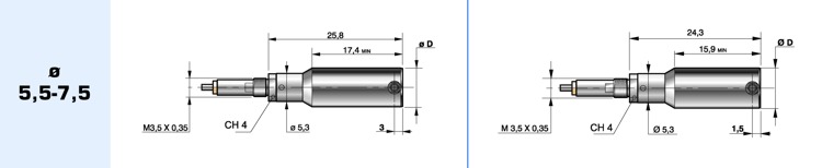 Sono fornibili con filetto da M3,5, M6 oppure M10 (attacco per la capsula) e diametro 8 oppure 3/8” (bloccaggio comparatore).